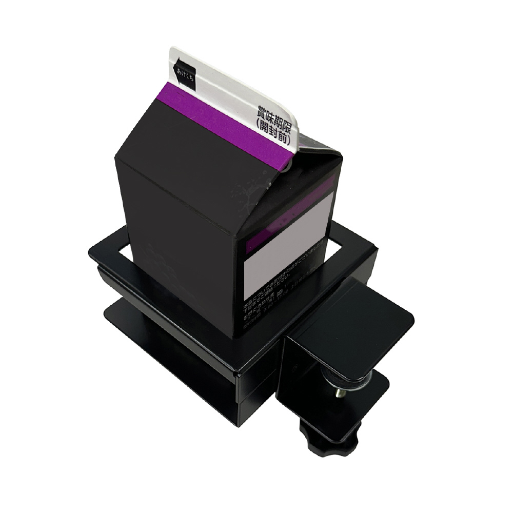 紙パックなどの角型飲み物に対応したクランプ式の角型ドリンクホルダーです。飲み物の定位置を決める事でデスクを広く、快適に使える。飲み物をこぼす心配や、水滴等でデスクが濡れるのを防ぎます。