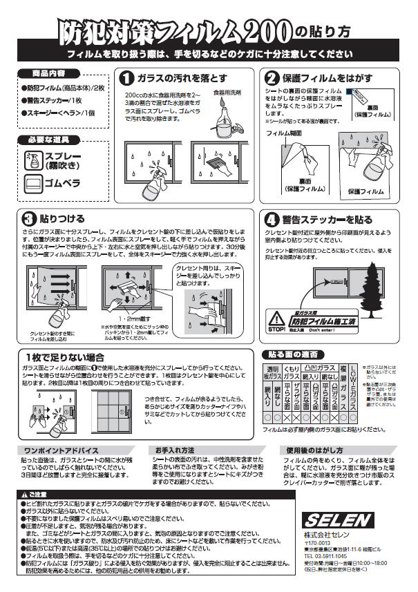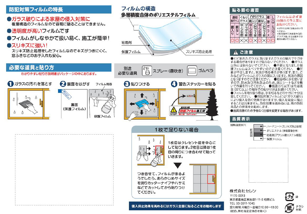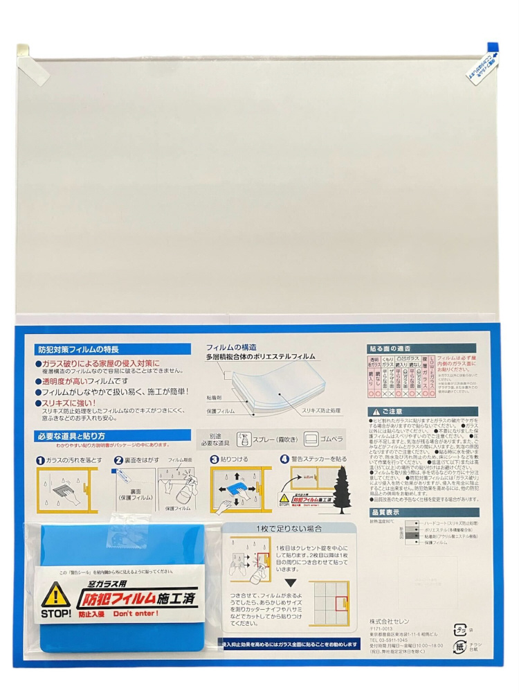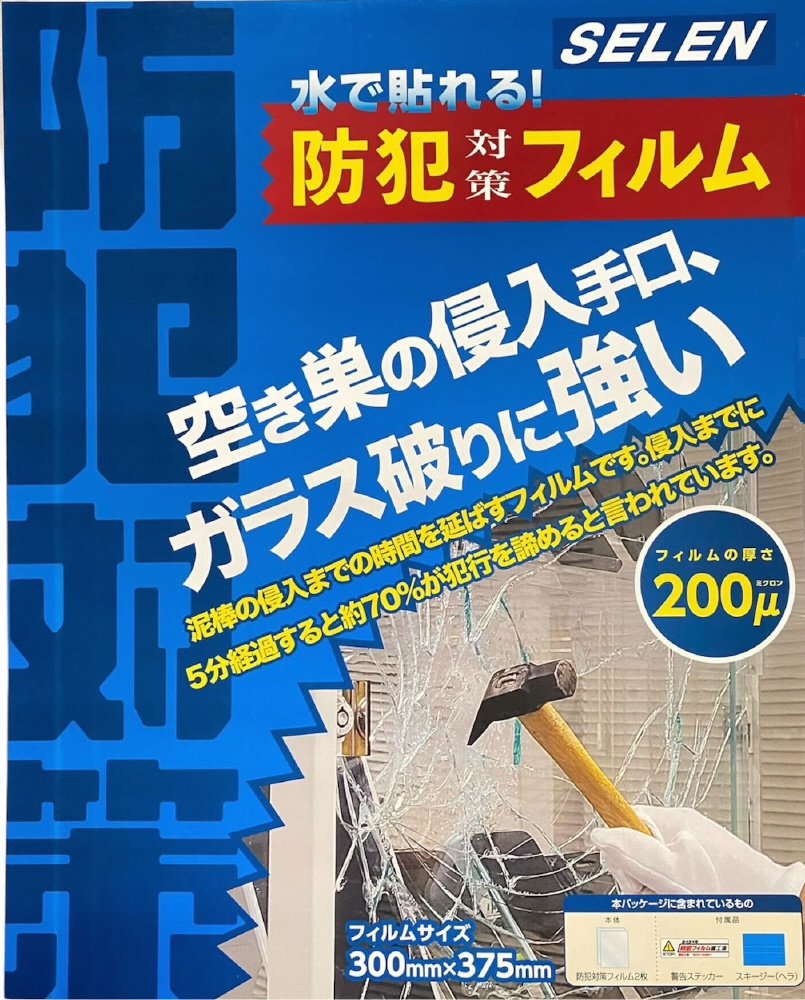 泥棒の侵入までの時間を延ばすフィルムです。侵入までに5分経過すると約70%が犯行を諦めると言われています。