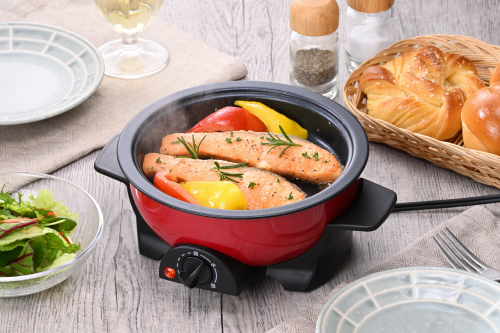 深型設計で料理の幅が広がり、3段階の温度調節が可能。