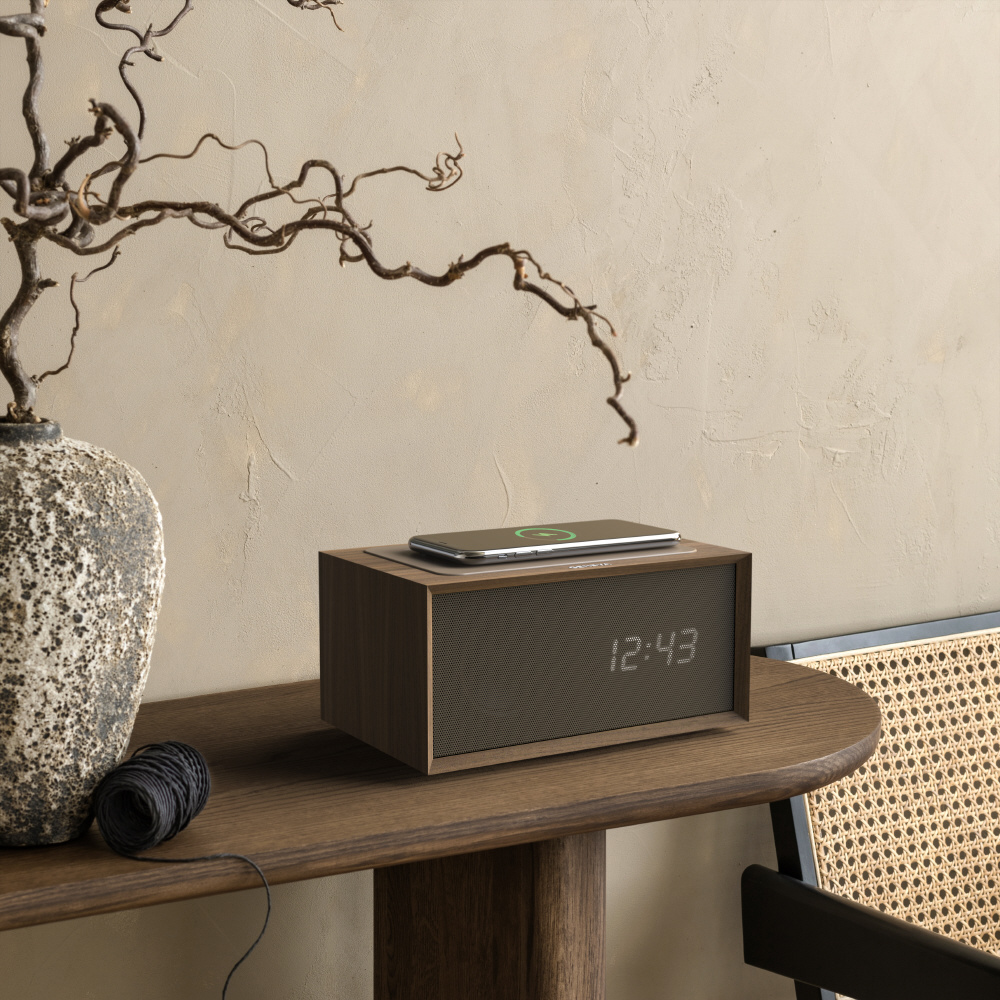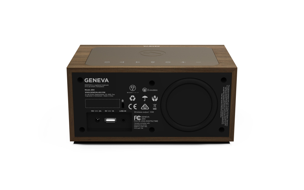 デザインオーディオの先駆者GENEVAならではの高いデザイン性と高音質を融合。デジタルクロック、ワイヤレスチャージ機能も備えたちょうど良いサイズのBluetoothスピーカー。