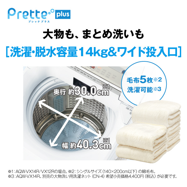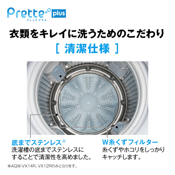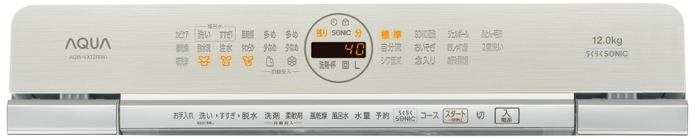 | 商品名 | インバーター全自動洗濯機 ホワイト AQW-VX12R(W) [洗濯12.0kg /乾燥3.5kg /簡易乾燥(送風機能) /上開き] |
