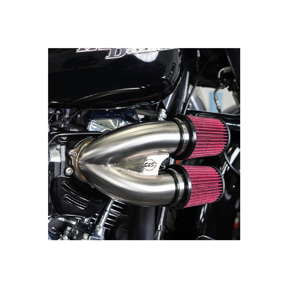 S&Sチューンドインダクションエアクリーナーは、高度に設計されたレーザーカット2本のチューブが1つに集合され、空気流に対してダイレクトに配置された1対のハイフローエアフィルターによって空気が供給されます。