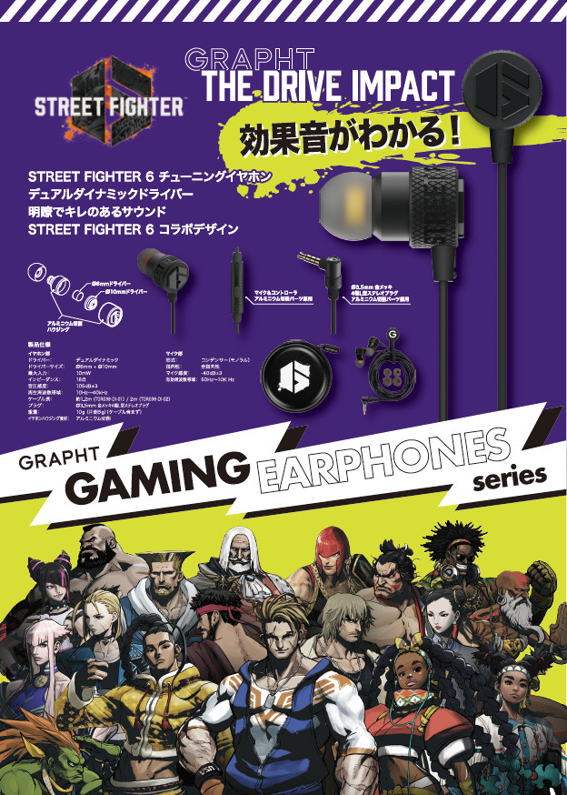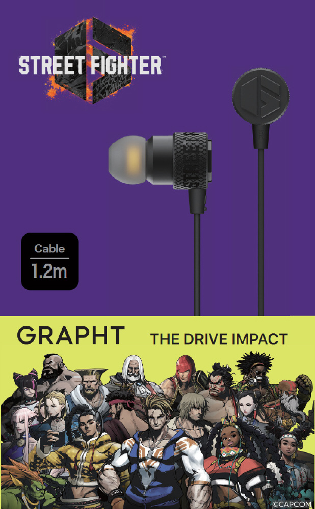 DRIVE IMPACTをはじめとするSTREET FIGHTER 6 ゲーム内の各種エフェクトサウンドや、キャラクターボイスなど、ゲームプレイ中に重要となる音をいち早く察知できるように、ゲームサウンドに合わせて専用のチューニングを施した新設計のゲーミングコラボイヤホン。