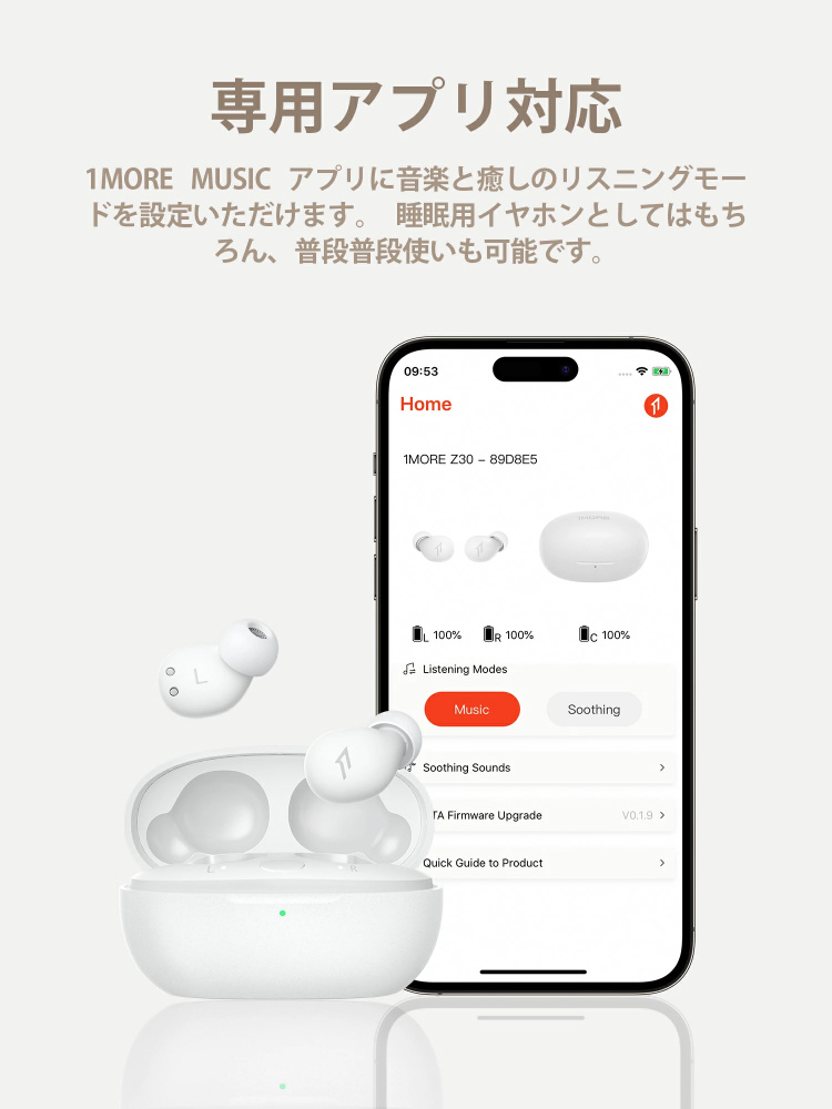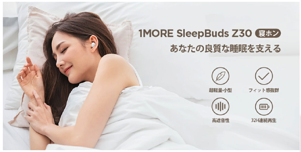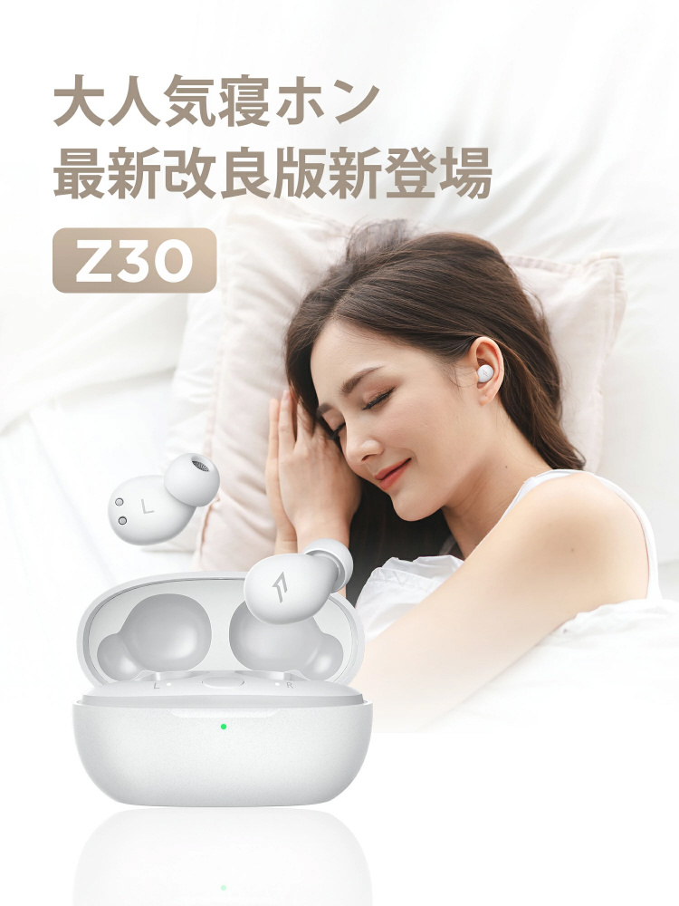 完全ワイヤレスイヤホン 睡眠用イヤホン ホワイト Sleeping-Earbuds-Z30 [ワイヤレス(左右分離) /ノイズキャンセリング対応 /Bluetooth対応]