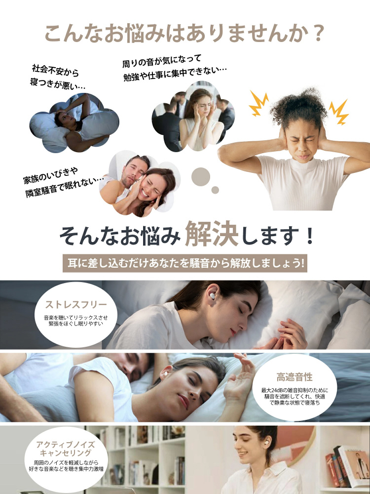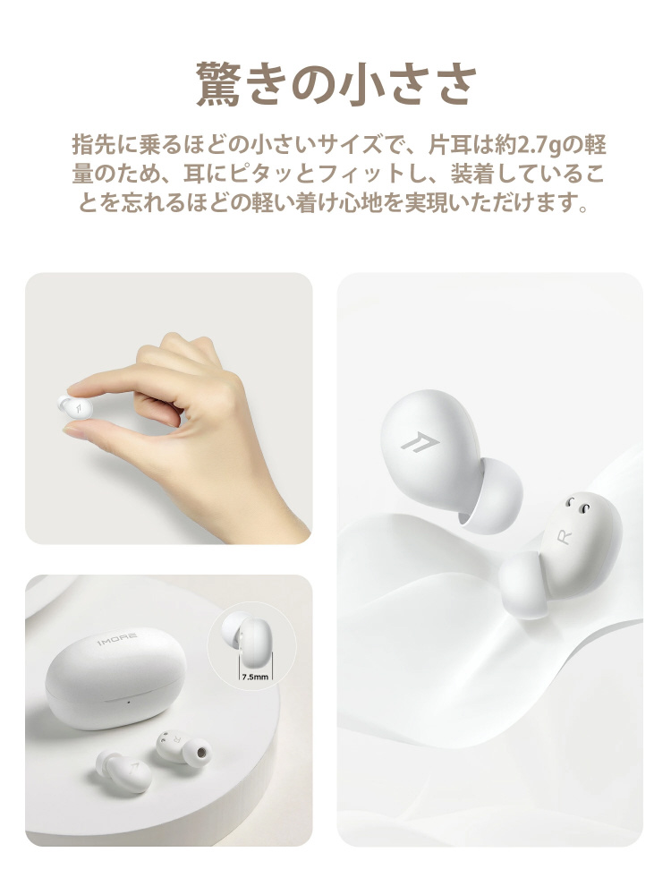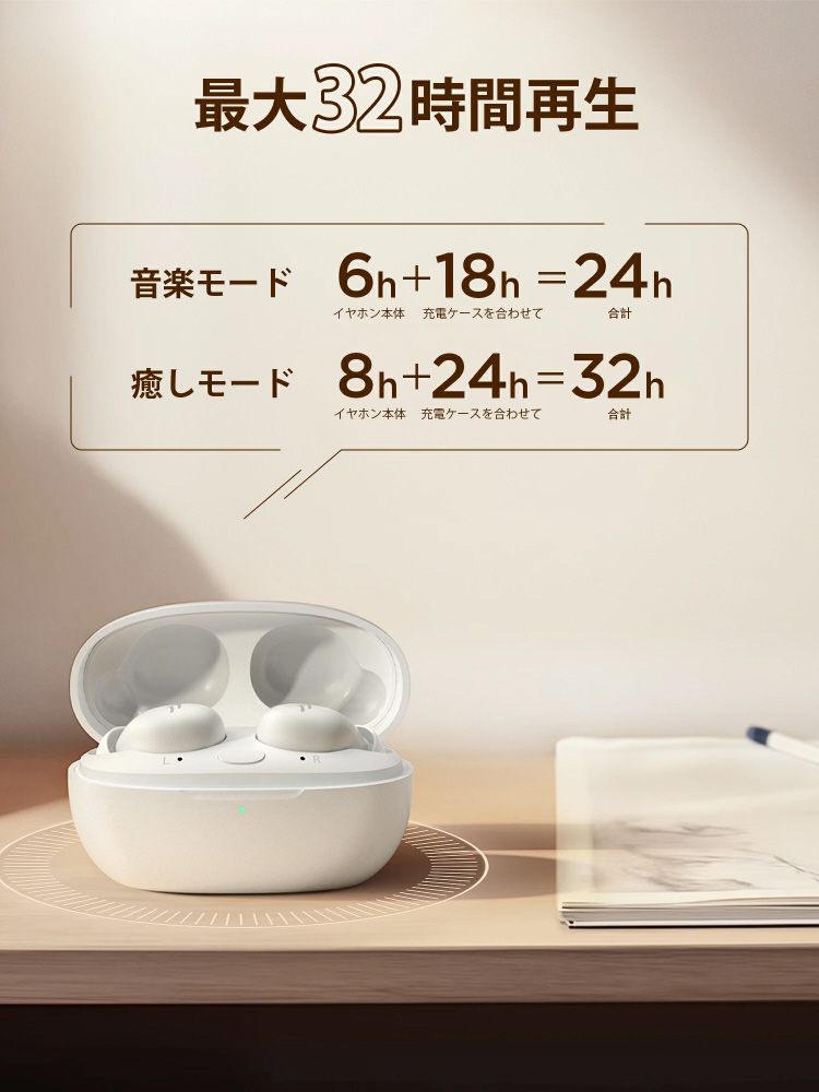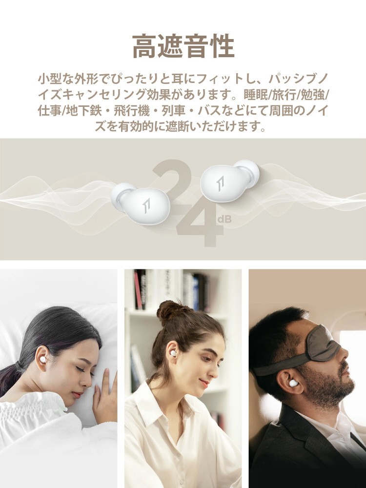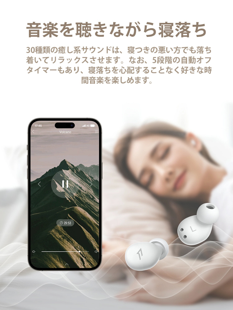 睡眠用イヤホン 横を向いて寝るための軽量イヤホン。快適なフィット感で安眠をサポート 一晩中使えるバッテリー