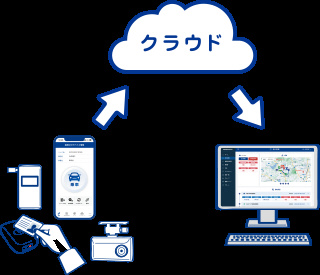 社用車の走行記録を保存。運転者認証機能。危険運転アラーム機能。