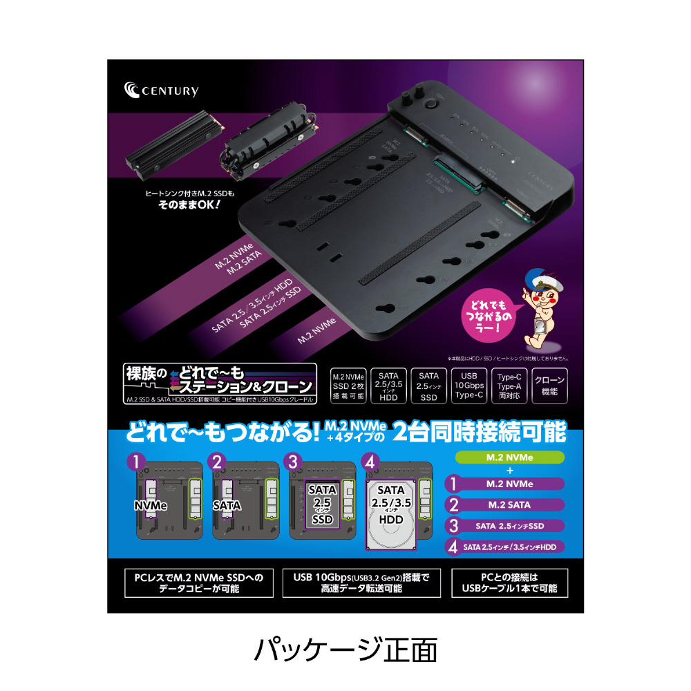 HDD/SSDクレードル USB-C+USB-A接続(M.2、3.5インチ&2.5インチ対応) 裸族のどれで〜もステーション&クローン(Mac/Windows11対応) ブラック CRCSNSU10GCP [M.2対応 /SATA+NVMe /2台]