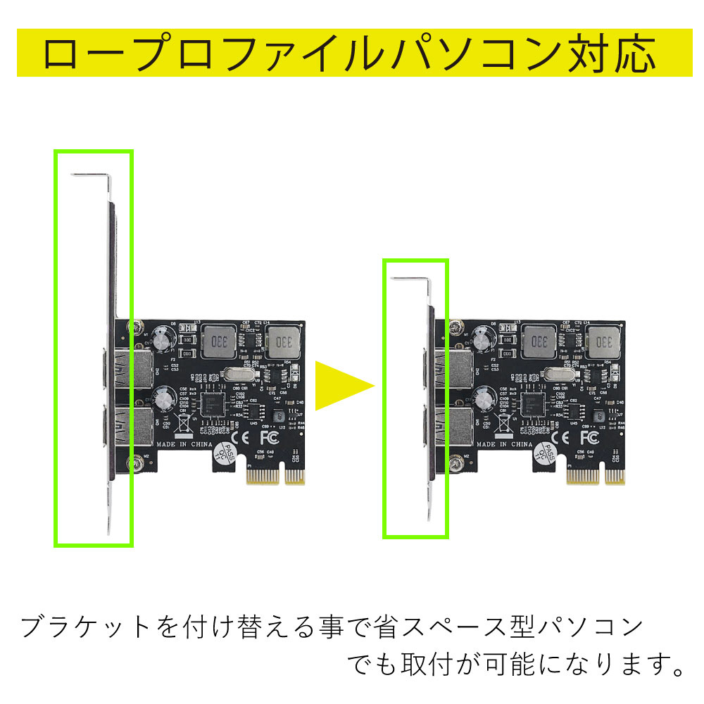 | 仕様2 | [基板サイズ]約58×67mm (突起部分を含まず) [重量]39g [対応OS]Windows11/10 / 8.1 / 8 / 7(各32/64bitOS対応) [付属品]ロープロファイルブラケット・取扱説明書 |