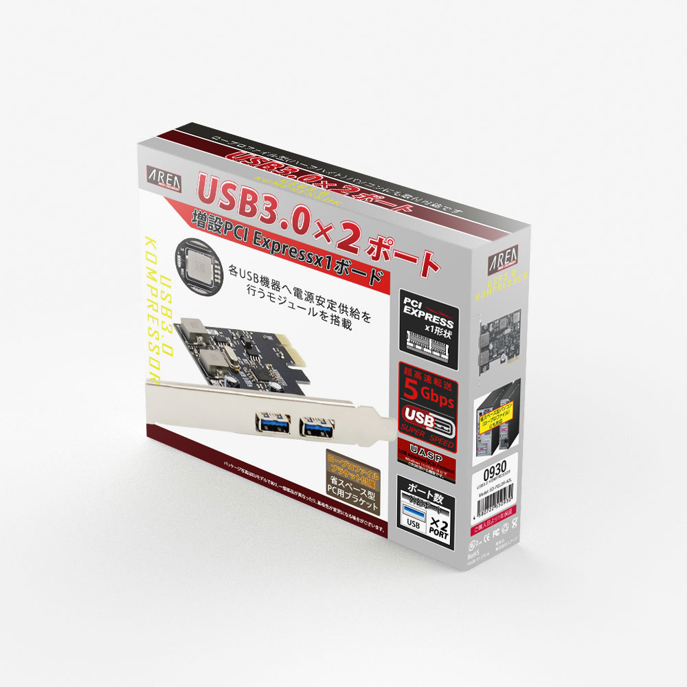 | 仕様1 | [インターフェース]USB3.0 [搭載コントローラー]Renesas D720202 [ポート数]外部2ポート [形状]PCI Express x1(Gen2以上を推奨) [転送速度]USB3.0:5Gbps、USB2.0:480Mbps (各理論値) [ポート出力電力]USB3.0:5V/900mA、USB2.0:5V/500mA (各最大時) |