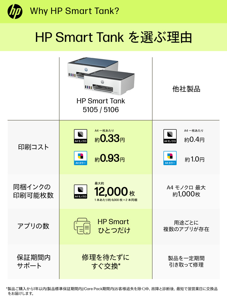 | 商品名 | 1F3Y3A0-AAAA 4色インクジェット複合機 HP Smart Tank 5105 [L判〜A4] |