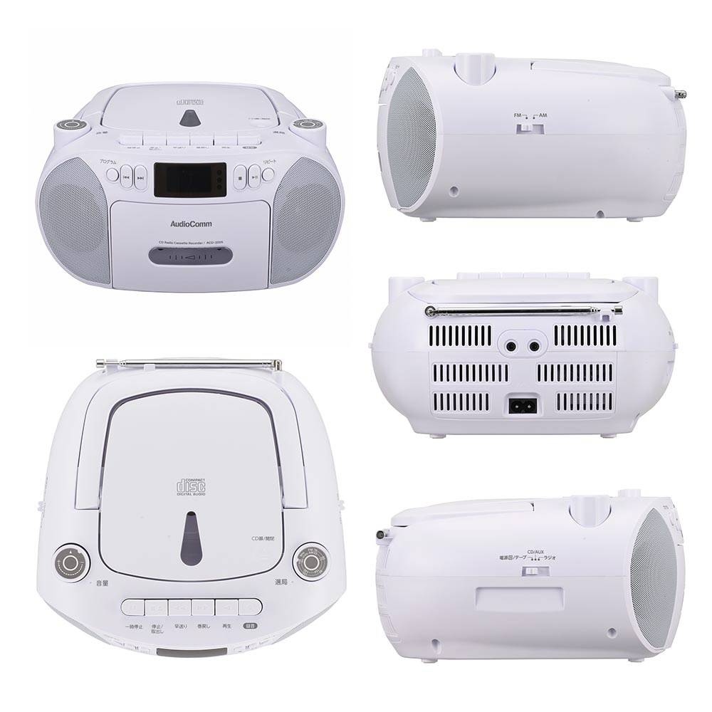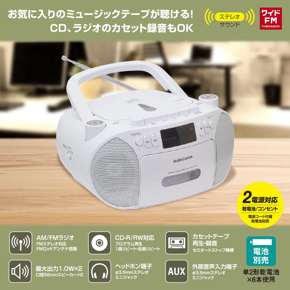 CDラジカセ AudioComm ホワイト RCD-320N-W [ワイドFM対応 /ハイレゾ非対応 /Bluetooth非対応 /CDラジカセ]