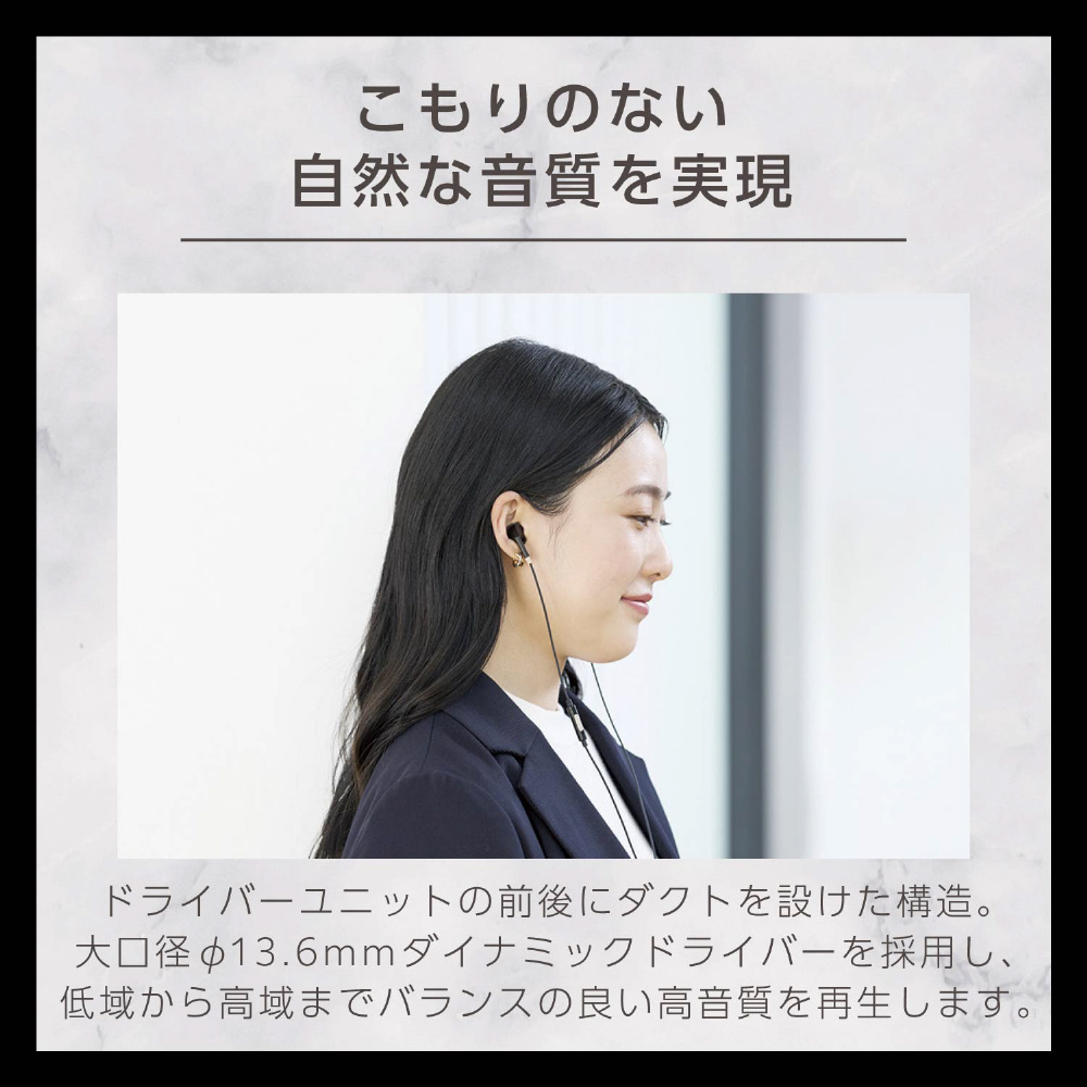 インナーイヤー型でこもりがなく自然な音質が楽しめる。私らしい仕事道具で毎日をもっと輝かせる、“ILMF”シリーズの有線ステレオヘッドホンです。