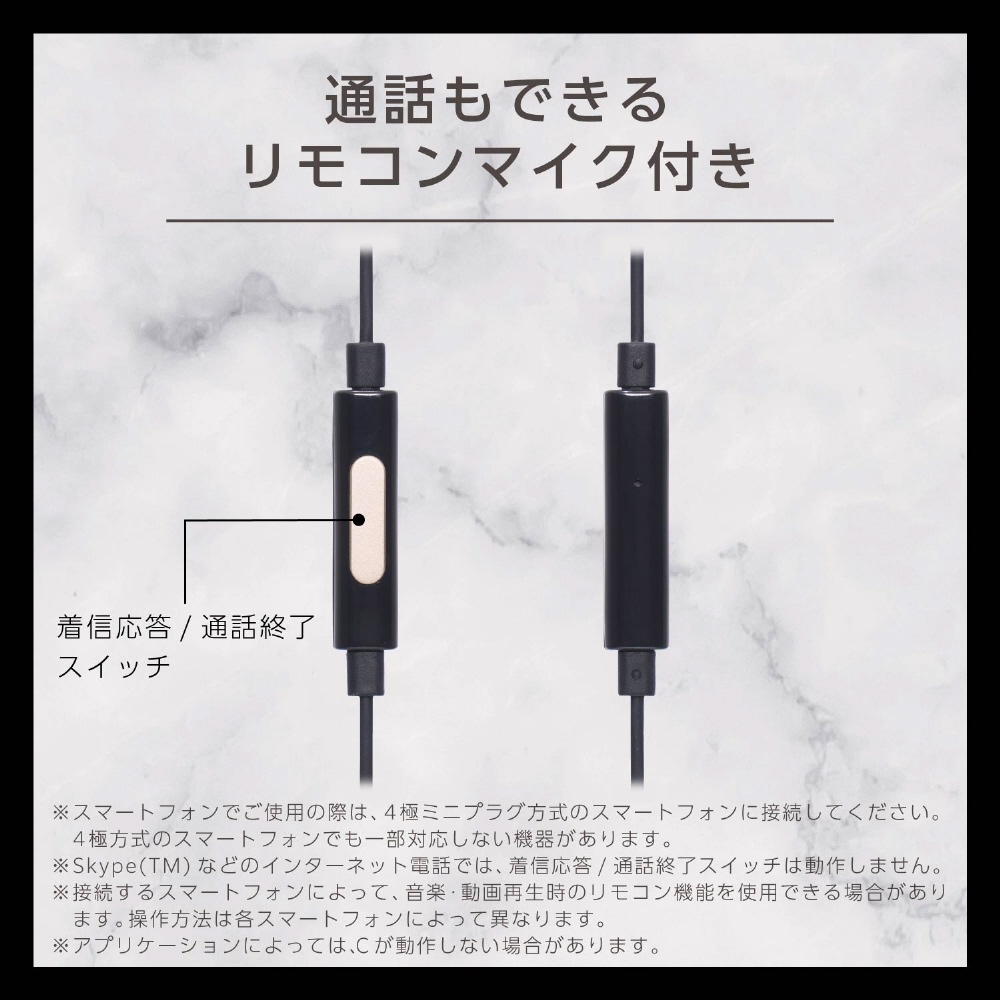■φ3.5mm4極ミニジャックを持つスマートフォンに接続し、音楽を楽しむだけでなく、通話もできるマイク付きモデルです。