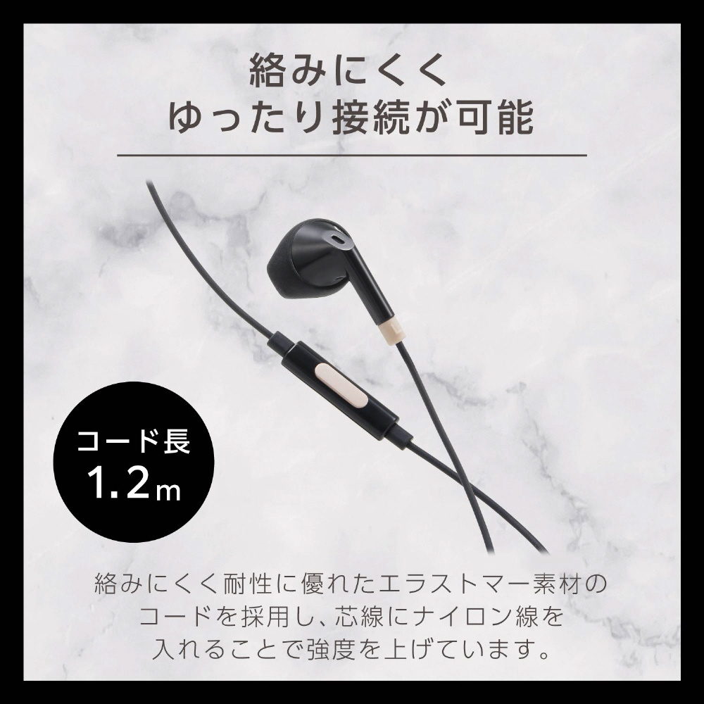 ■絡みにくく耐性に優れたエラストマー素材のコードを採用しています。また、芯線にナイロン線を入れることで強度を上げています。