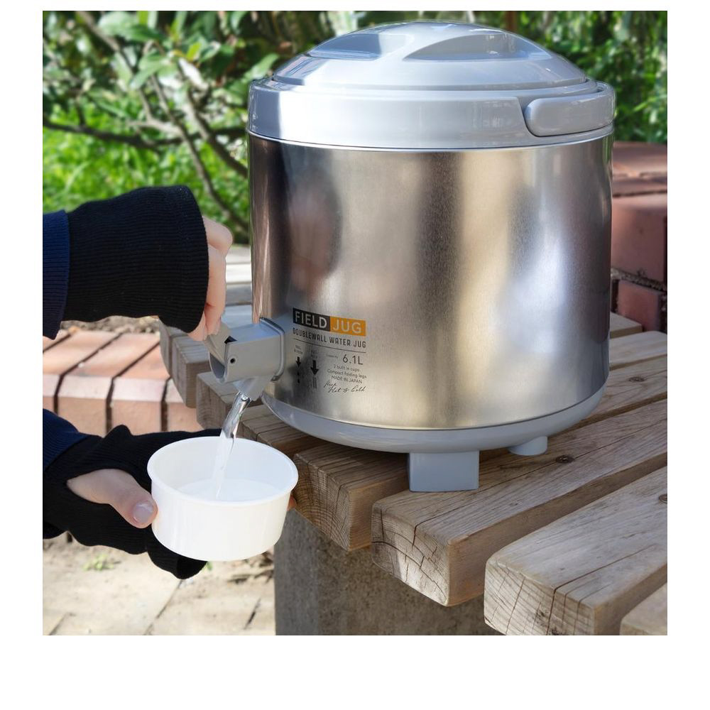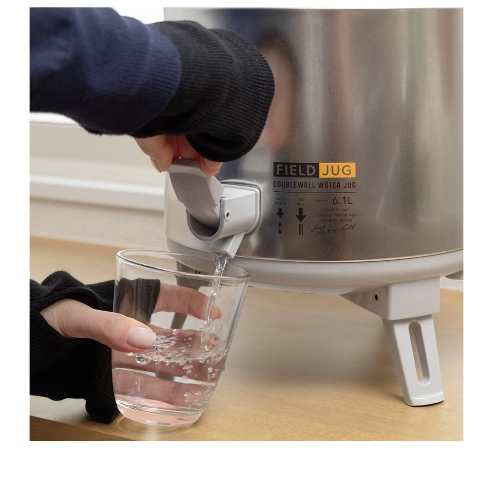 2WAYコック、折りたたみ脚、広口タイプで使いやすく、保温保冷機能付きで飲みごろ温度をキープします。