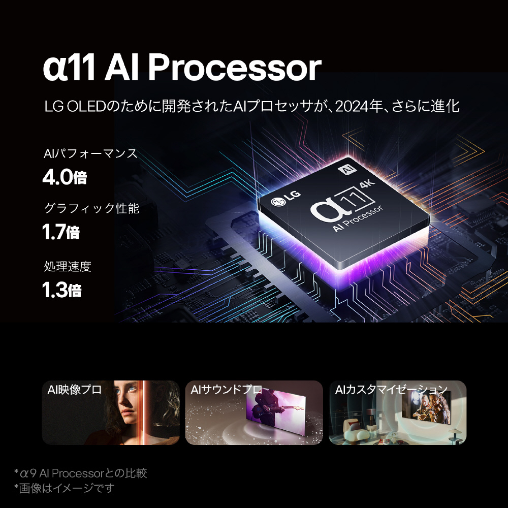 LGテレビの真髄ともいえるOLED専用AIプロセッサー搭載が今年も進化。これまでより高速かつグラフィック技術が向上し、画質と音質を最適化。どんなコンテンツも美しく鮮明な映像と豊かなサウンドへ。