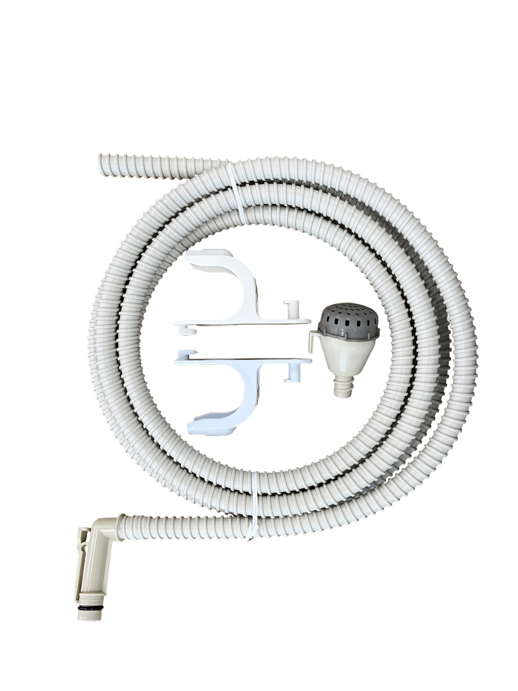お湯取ホース、クリーンフィルター、ホース掛けの3点セット。