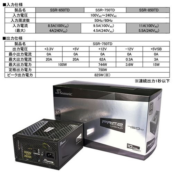 SSR750TD Seasonic PRIME シリーズ フルモジュール・ハイブリッド電