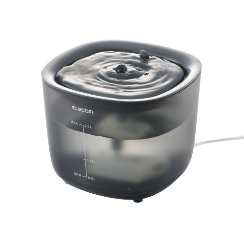 トレイ中央からポコポコと水が湧き出る湧水タイプです。穏やかな水流でひげに水が当たりにくく、360度どこからでも飲める広い飲み口で多頭飼いにも対応しています。