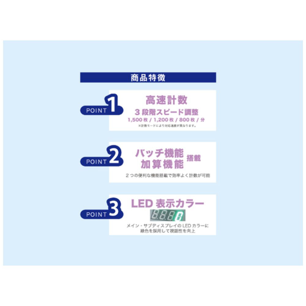 「バッチ機能」、「加算機能」と2つの便利な機能搭載で効率よく計数が可能です。