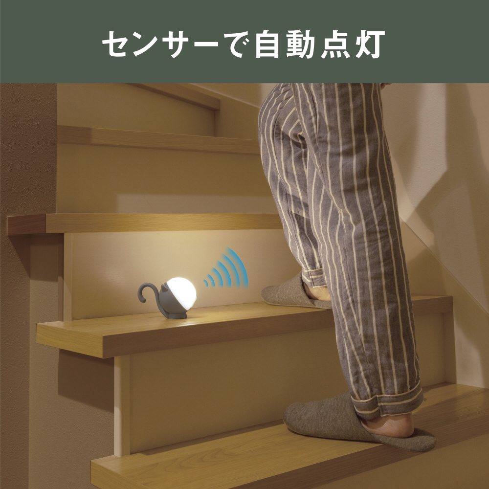 ちいさくてかわいい、ねこちゃんフォルムのセンサーライト。