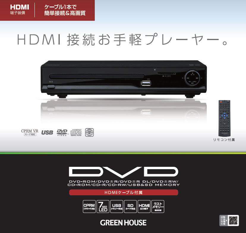 HDMI対応 DVDプレーヤー GH-DVP1K-BK