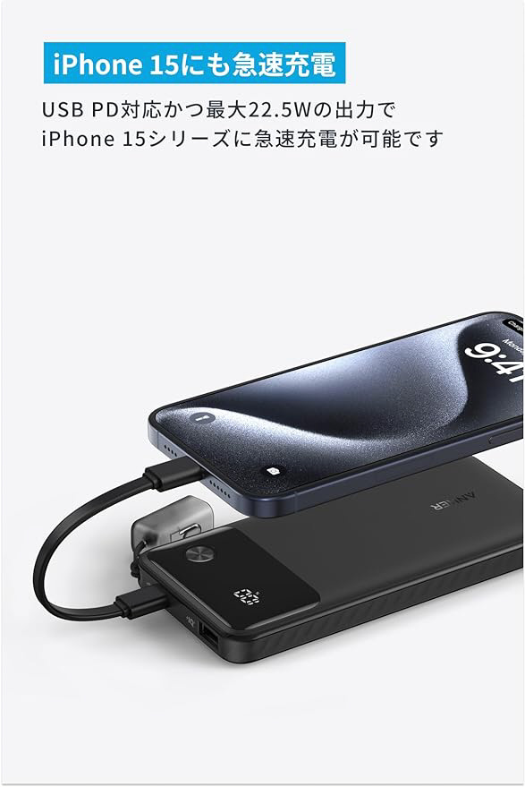 モバイルバッテリー Power Bank (10000mAh、22.5W、2 Ports) ブラック A1388N11 [USB Power Delivery対応 /2ポート]
