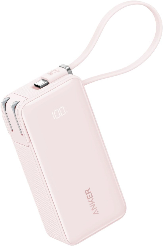 モバイルバッテリー Power Bank (10000mAh、Fusion、Built-In USB-C ケーブル) ピンク A1637N51 [USB Power Delivery対応 /2ポート]