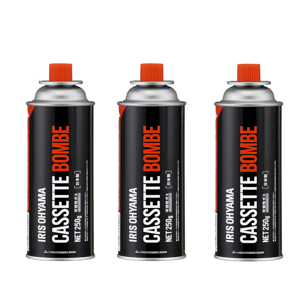 カセットガス3本セットです。※IRIS OHYAMAと表示のあるコンロ専用容器です。