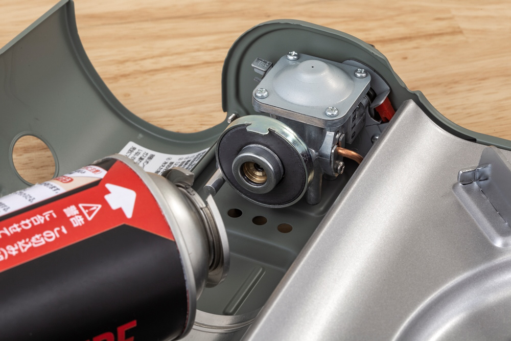 ■ボンベ切込み凹部をコンロガイド凸部に合わせてセット使用してください。