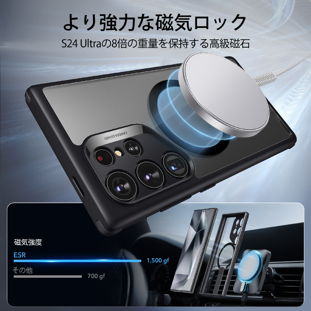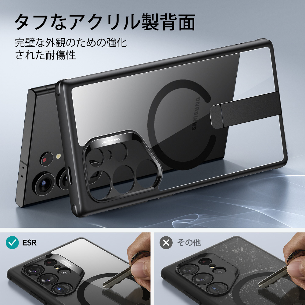 Galaxy S24 Ultra対応 キックスタンド付き マグネットケース ESR Clear Black