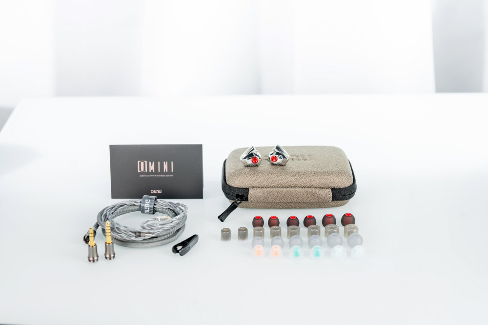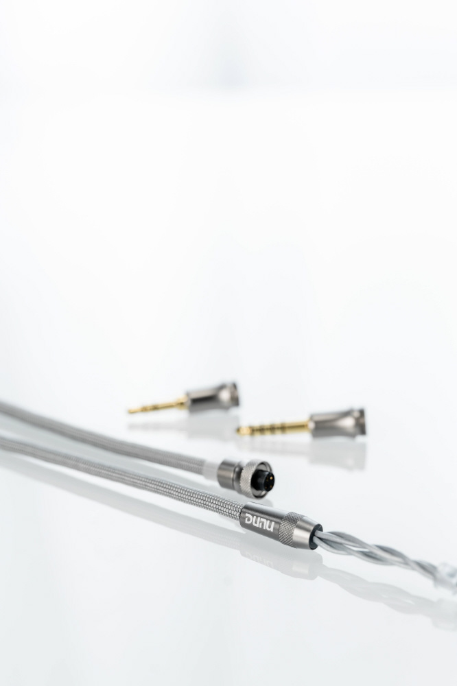 高剛性ドーム+フレキシブル・サスペンション・サラウンド・コンポジット・ ダイヤフラムデュアル・マグネティック・サーキットデュアル・チャンバー 高性能ダイナミック・ドライバー 頑丈なクロームメッキ・オールメタル・キャビティ DUNU Q-ロック・ミニ・シリーズ交換可能プラグ・ システム4.4mmバランスと3.5mmシングルエンド 4芯OCC銅と銀メッキOCC混合ケーブル付属