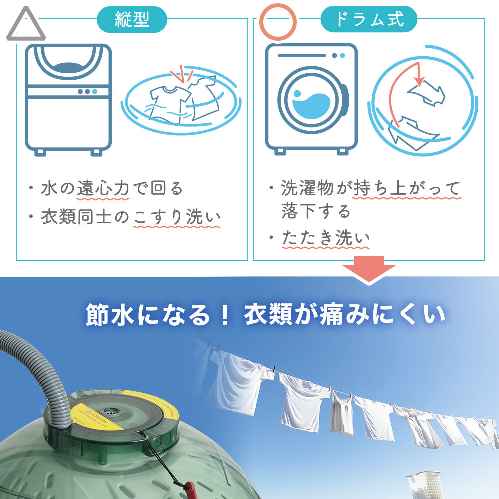 手で回す洗濯機なのに衣類に優しいドラム式洗濯機です。