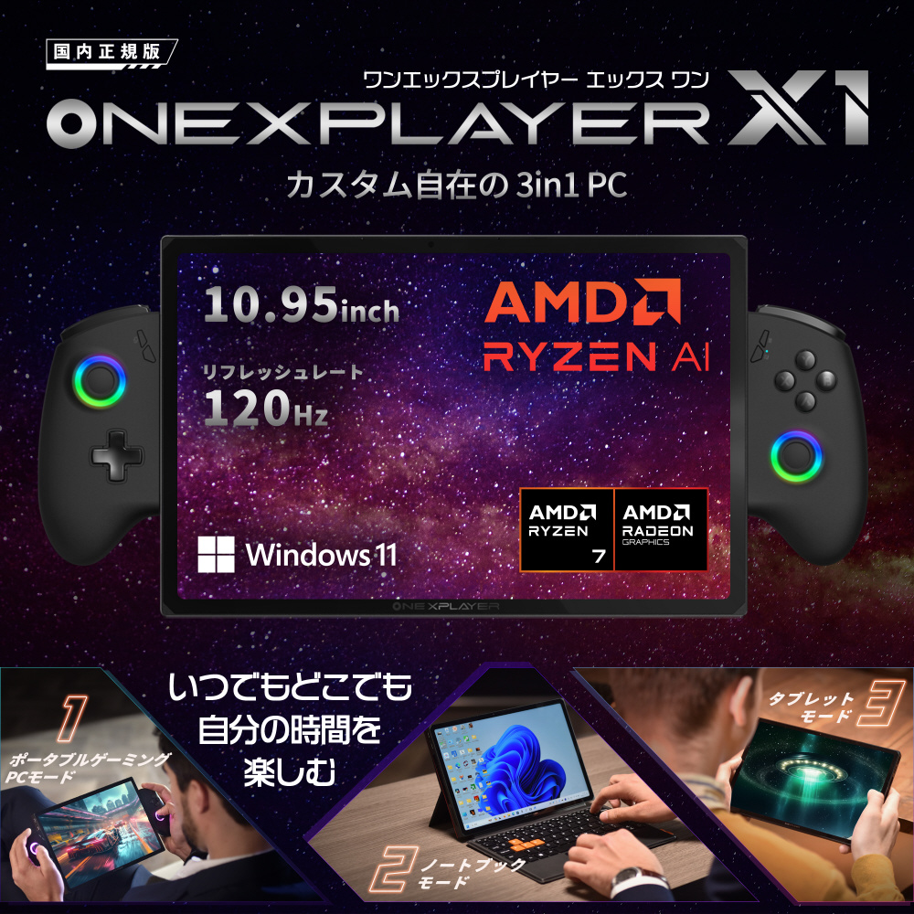 ONEX1-A7-4R ポータブルゲーミングPC ONEXPLAYER X1 3in1 PC [10.95型 /Windows11 Home /AMD Ryzen 7 /SSD:4TB /無し /2024年夏モデル]