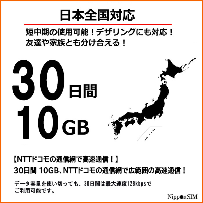 | 商品名 | Nippon SIM for Japan 30日10GB 日本国内用 ドコモ回線 プリペイドデータSIMカード DHA-SIM-300 [マルチSIM /SMS非対応] |