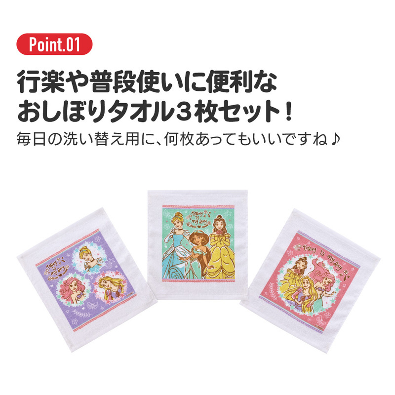 行楽や普段使いに便利なおしぼりタオル3枚セットです。兄弟・姉妹用や、毎日の洗い替え用に、何枚あってもいいですね♪