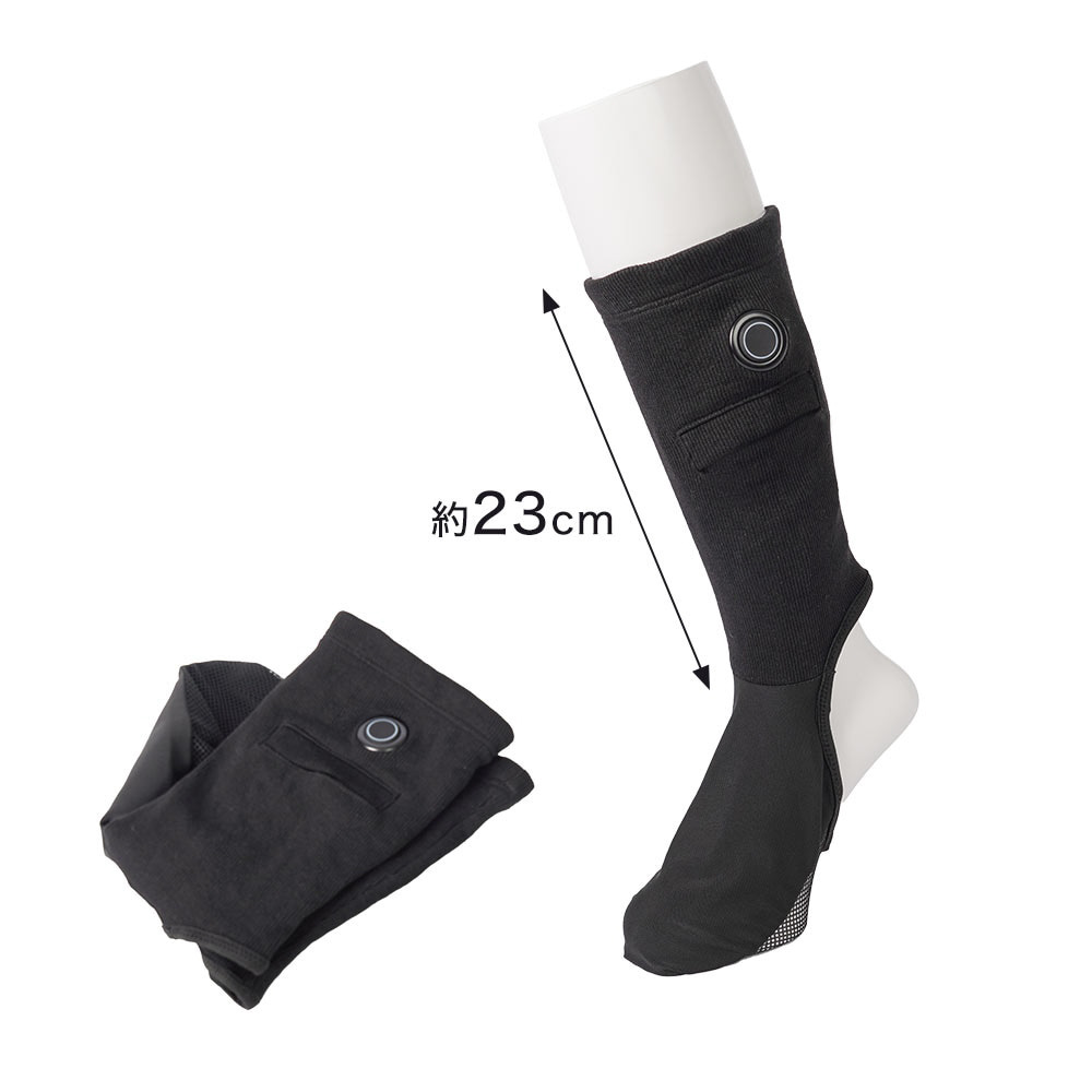 靴の中を暖める「足甲ヒーター」は、靴下の上から履く超薄型ハイソックスタイプのヒーターです。