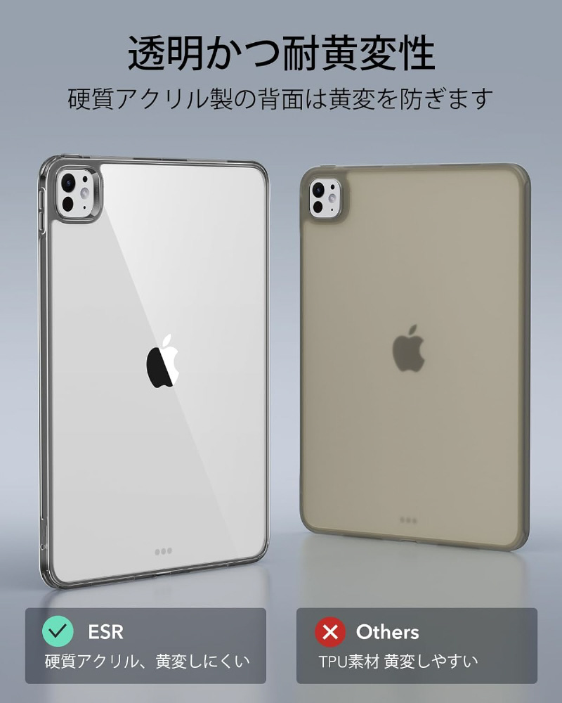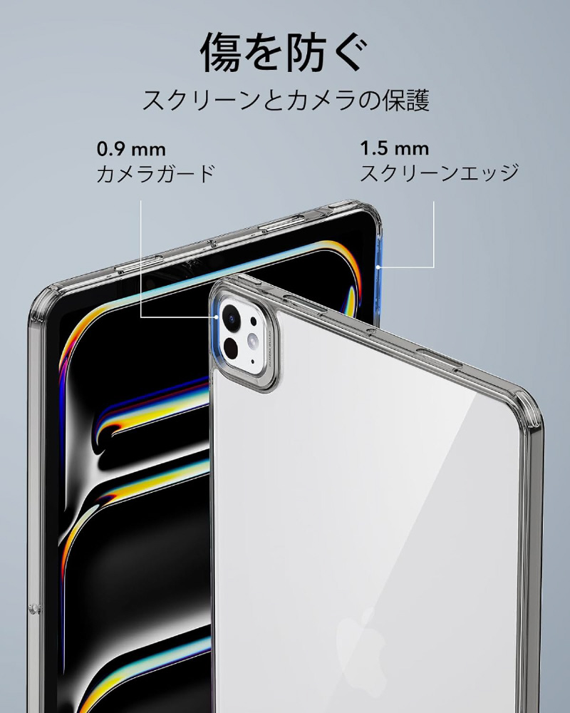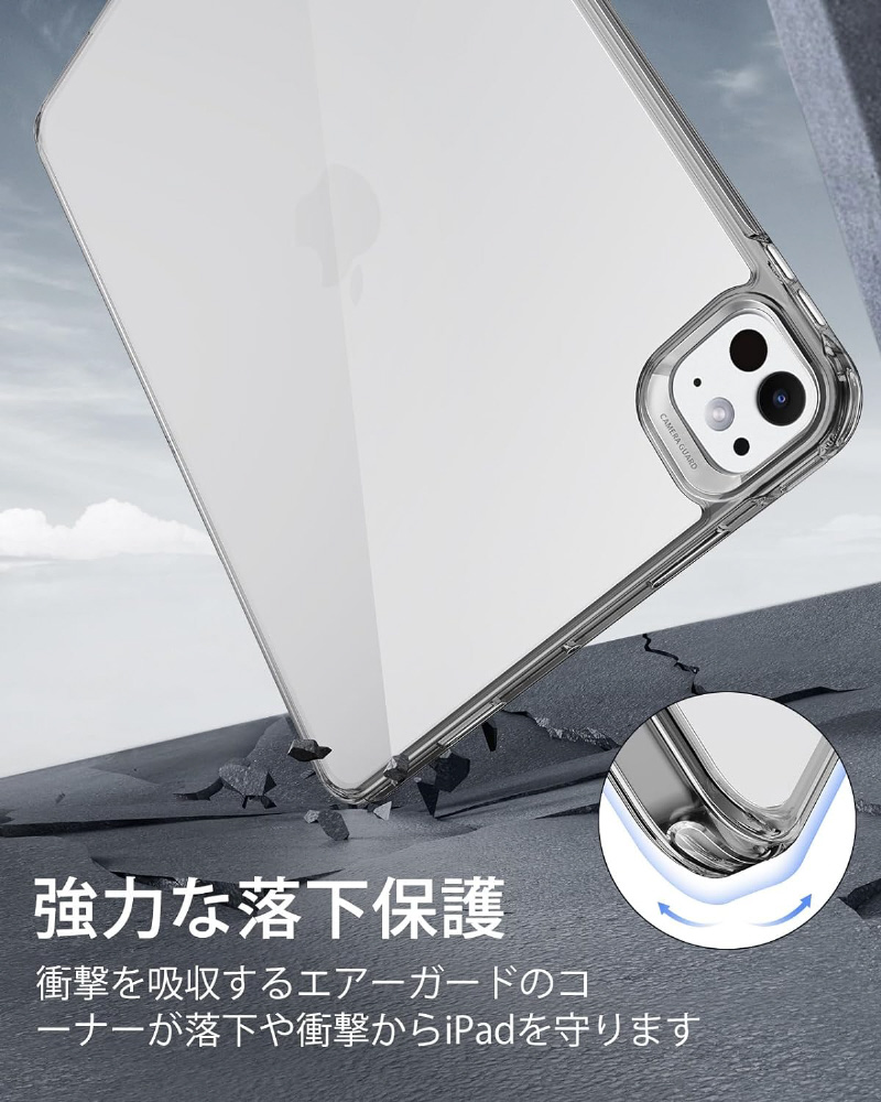 損傷から保護するハイブリッド保護、iPadを際立たせるクリアケース
