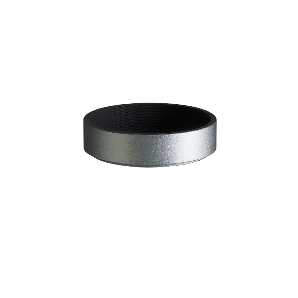 本体と同色で、レンジファインダーカメラの距離計窓を遮ることのない形状のコンパクトなストレートタイプのフードが付属しています。このフードを外せば、マウントからの全長は30mmとなり、さらに携帯性やバッグからの出し入れのしやすさが高まります。フィルター径は伝統的でコンパクトなサイズ感のφ39mmです。