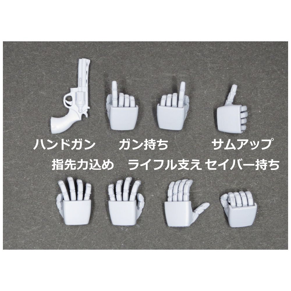 10種類13点のハンドパーツにハンドガンとボールジョイントがセットになっています。