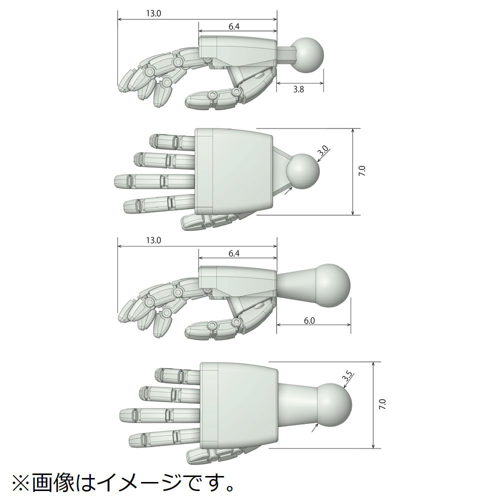 手首のボールジョイントは直径3ミリと直径3.5ミリに対応しています。
