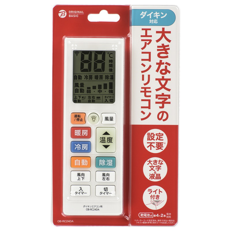 大きな文字のエアコンリモコン ダイキン対応 ホワイト OB-RC24DA [単4電池×2本(別売)]