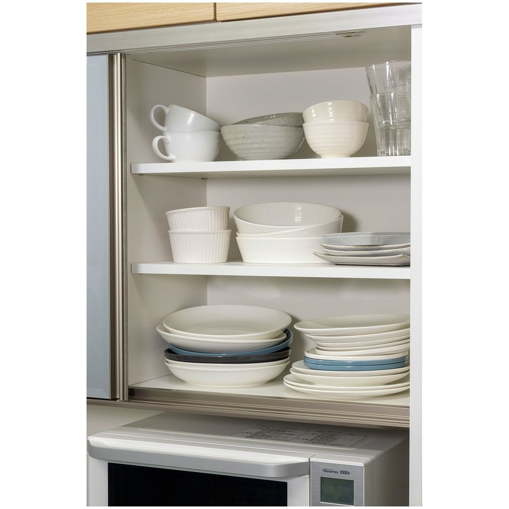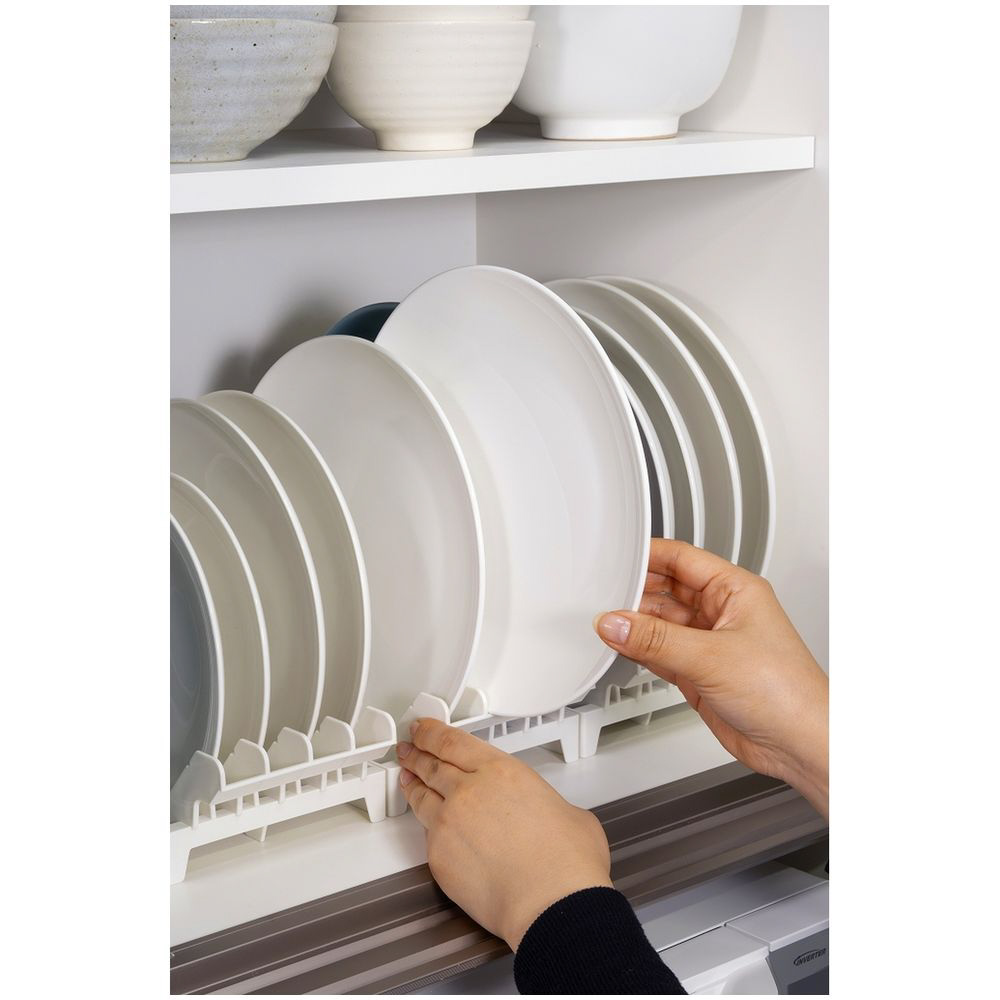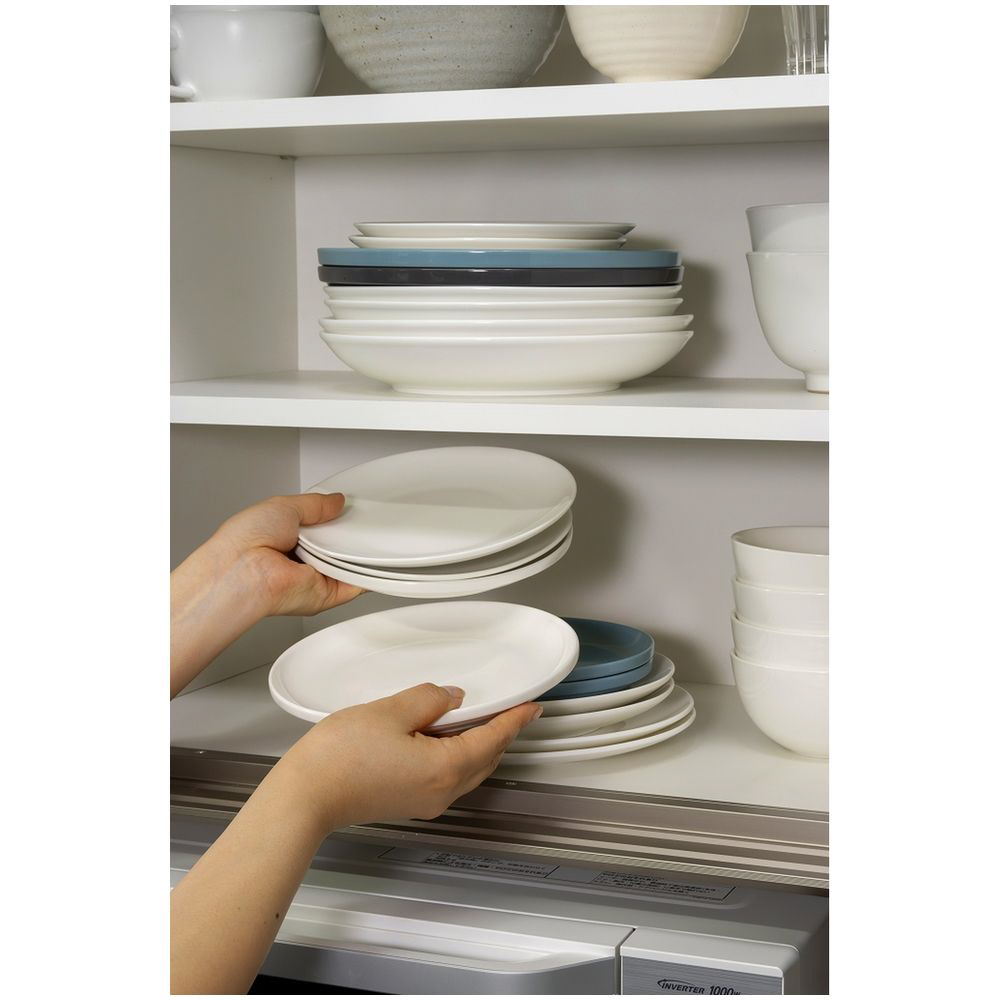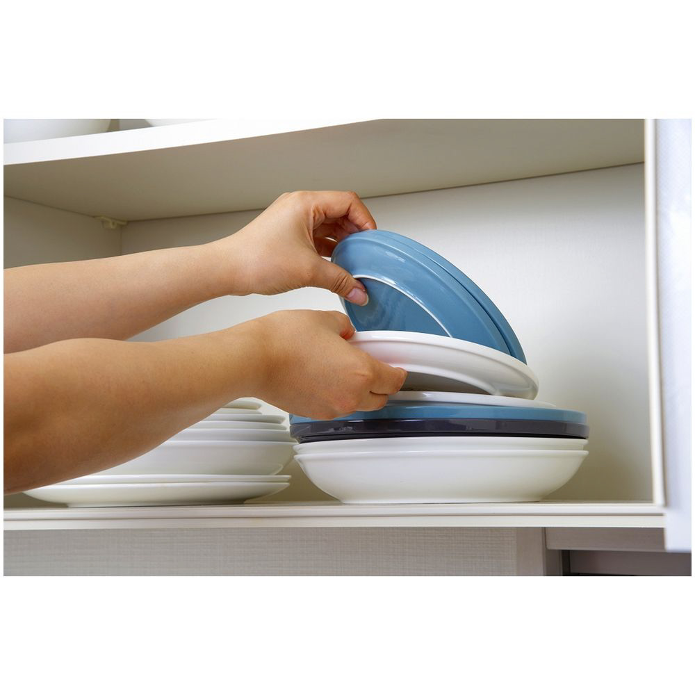 直径18〜26cm、高さ4cm以下の皿を立てて収納できます。