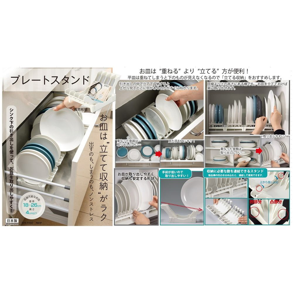 お皿を立てて収納できる便利なプレートスタンド。