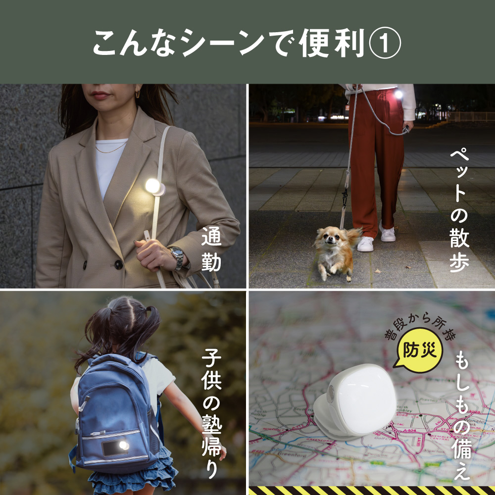 いつでもどこでも「安心」を持ち歩いて欲しい想いを込めて、小さくてもしっかり明るいライトを作りました。護衛さんを身につけて夜道を快適に!