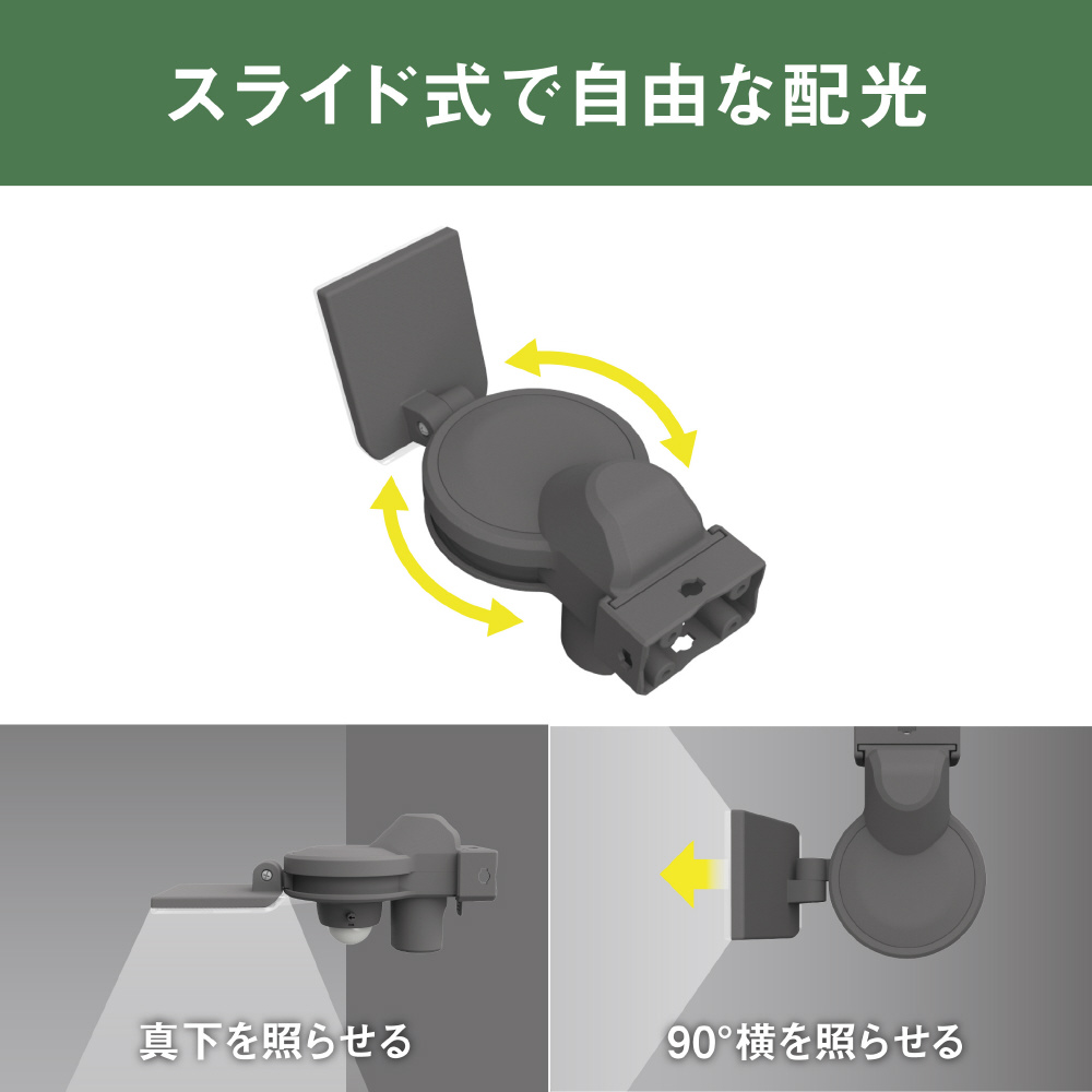 ライト部がスライド式で照射方向が真下や真横に自由に調節できます。