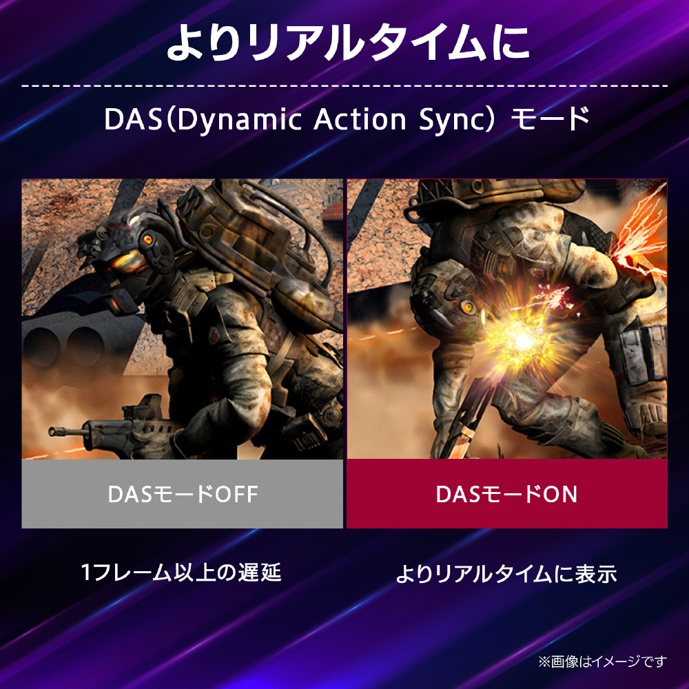 『DASモード(自動設定)』は、本来映像を画面に出力する際に一度格納される「フレームバッファ」を通さず映像をダイレクトに出力することで、遅延を抑えます。