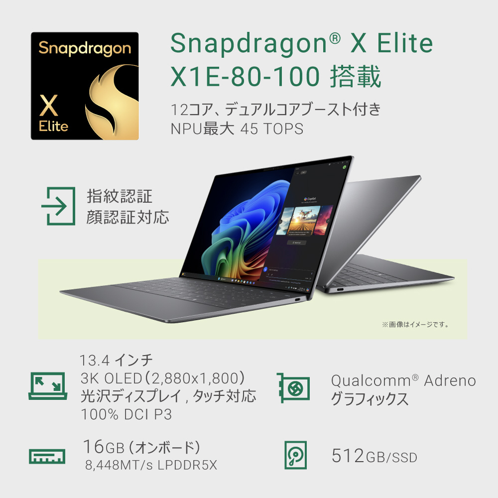 Snapdragon X Eliteを搭載した初のCopilot+ XPS 13インチ モバイルノートパソコン