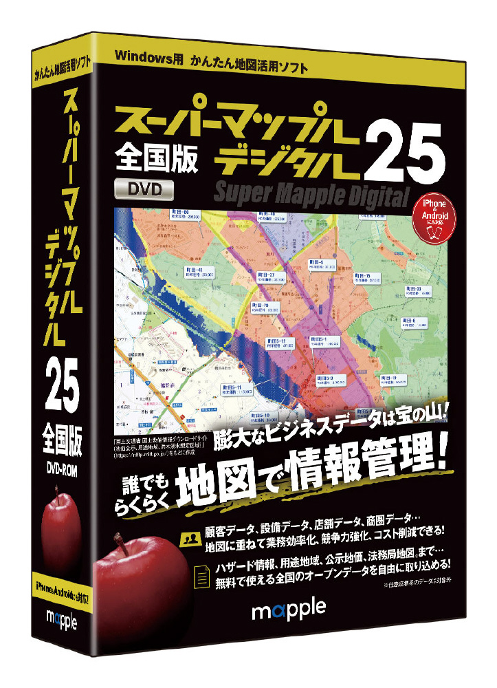 変化の激しいビジネスの中で役立つ機能が満載の地図ソフトの全国版。 情報収集からビジネスの課題収集や分析などの活動をサポート。