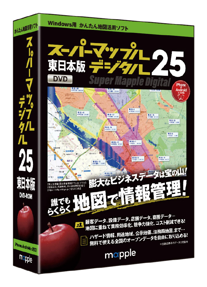 変化の激しいビジネスの中で役立つ機能が満載の地図ソフトの東日本版。情報収集からビジネスの課題収集や分析などの活動をサポート。